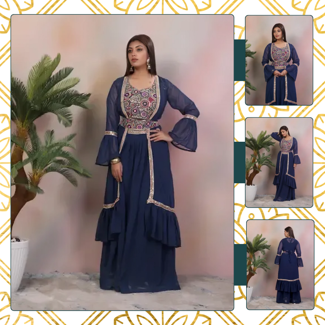💙 Modern Style Blue Crop Top, Lehenga & Shrug Set 👗
